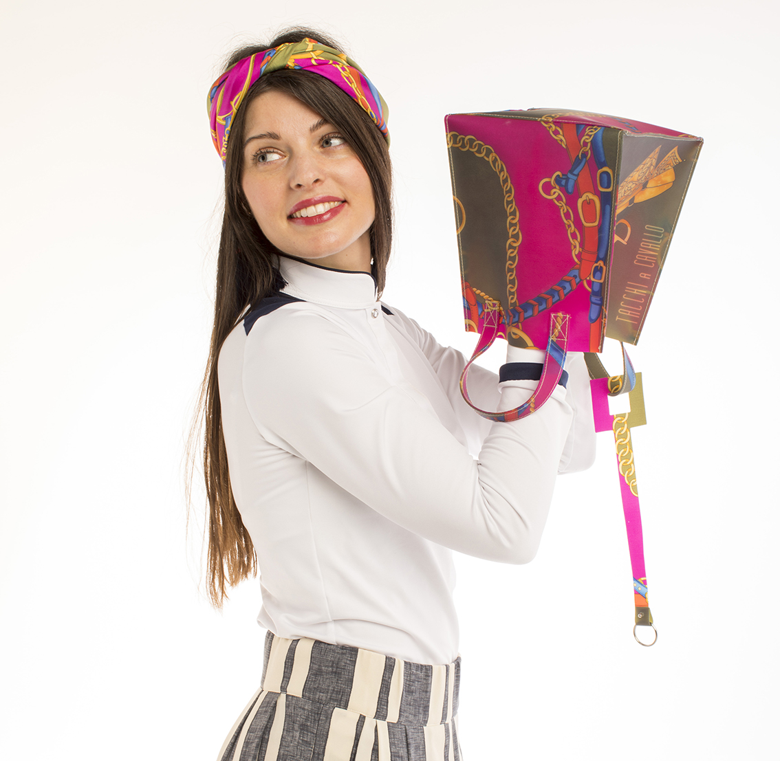 This is why I decided to transform into bags two of the foulards from my Tacchi a Cavallo collection, which I launched last year – the blue one and the fuchsia-green one – two colours that recall the upcoming summer season and that can be easily combined with any kind of outfit.